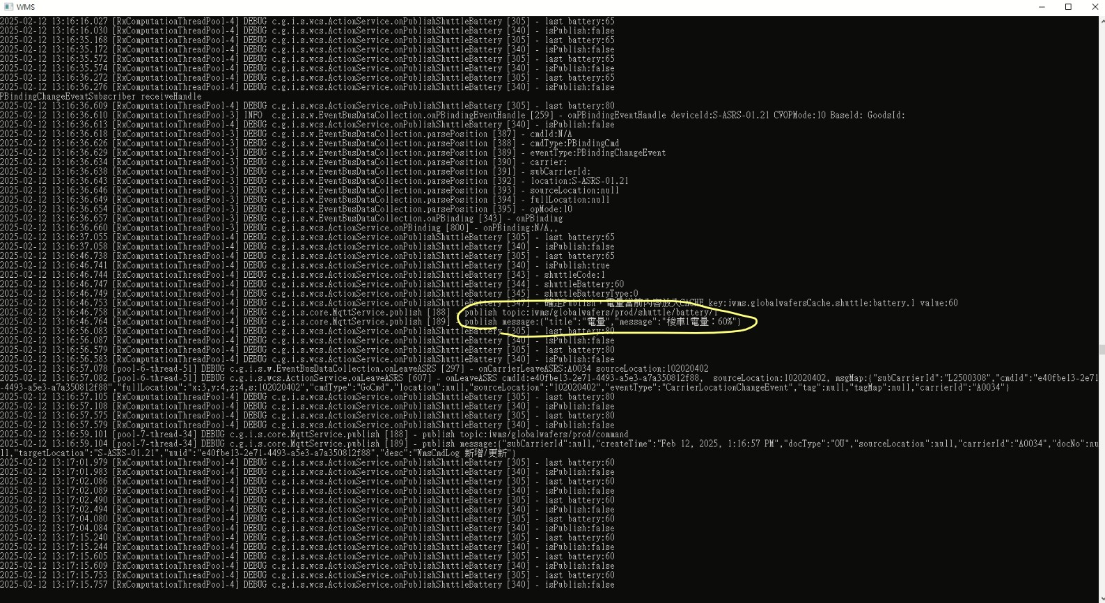 低電量通知 mqtt: iwms/globalwafers/{env}/shuttle/battery/low