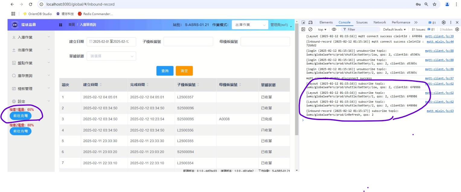 電量變化 mqtt: iwms/globalwafers/{env}/shuttle/battery/{shuttle_no}